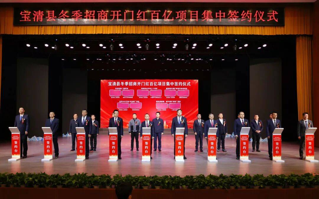 2月11日,2024-2025年度宝清县冬季招商开门红“蛇舞宝清领春潮·招大引强开新局”百亿项目集中签约仪式在文创中心一楼报告厅盛大举行。在元宵佳节到来之际喜迎八方宾客,共同见证签约额139亿元,涉及新能源、食品深加工、矿产开发、文化旅游等多个领域的19个项目落户宝清。
