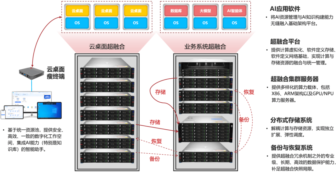 备份与恢复系统,补足超融合快照局限:提供长期保留、细粒度恢复的专业级数据保护(如CDM技术)。跨层级保护:覆盖虚拟机、数据库、文件级数据,支持秒级RTO/RPO。