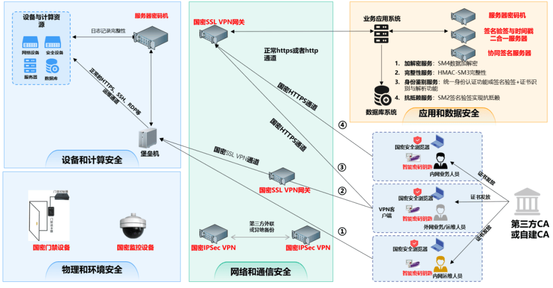 构建国家商用密码算法(国密)合规基座,自动生成密码策略审计报告,满足等保合规要求;通过协同签名服务器无缝对接电子签章、成绩加密归档等关键业务,确保操作不可抵赖性;同时为食堂支付、门禁系统等独立场景提供轻量化密码模块定制服务,实现密码能力与校园业务流的无感融合,形成“基础合规-核心业务保障-业务场景覆盖”的垂直防护体系。