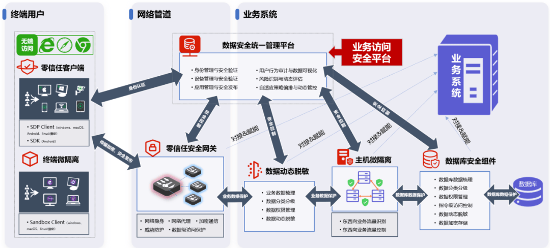 以字段级加密保护学籍/成绩库核心数据,结合动态脱敏实时隐藏敏感信息,杜绝越权访问;通过API网关对接业务系统,依据角色(教师/学生/管理员)实施最小权限控制,精准管理数据操作行为;同步构建全链路审计机制,完整记录从数据访问到存储的全流程轨迹,实现异常操作秒级溯源取证,形成覆盖“防护-控制-追溯”的数据全生命周期安全闭环。